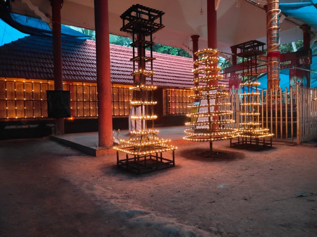 According to Hindu beliefs, lighting lamps is a way of invoking divine energy and dispelling darkness — both external and internal. The Niramala offering is a collective act of devotion in which thousands of oil lamps (deepams) are lit all around the temple premises, including the temple walls (vilakkumadam), sanctum, and pathways. As the flickering lamps illuminate the night, devotees believe that the light symbolizes the victory of truth over ignorance and the presence of the Goddess in her most radiant form.