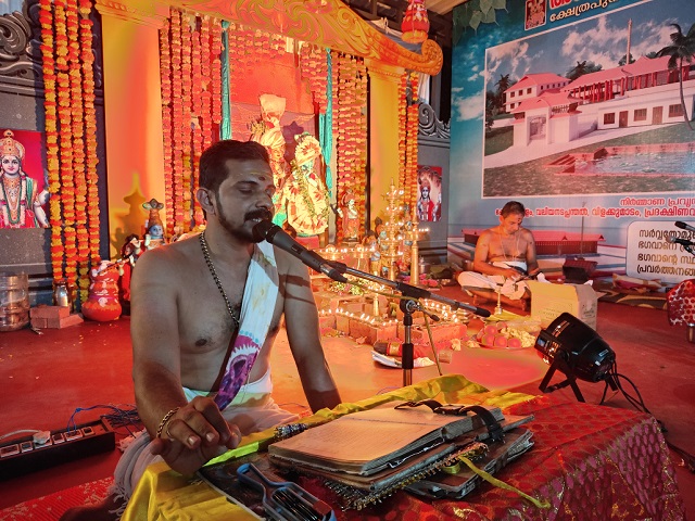 At our temple, this auspicious Sapthaham is conducted every year in the month of January with great devotion and traditional rituals. Learned scholars recite and explain the divine stories, guiding devotees towards bhakti (devotion), dharma (righteousness), and inner peace.